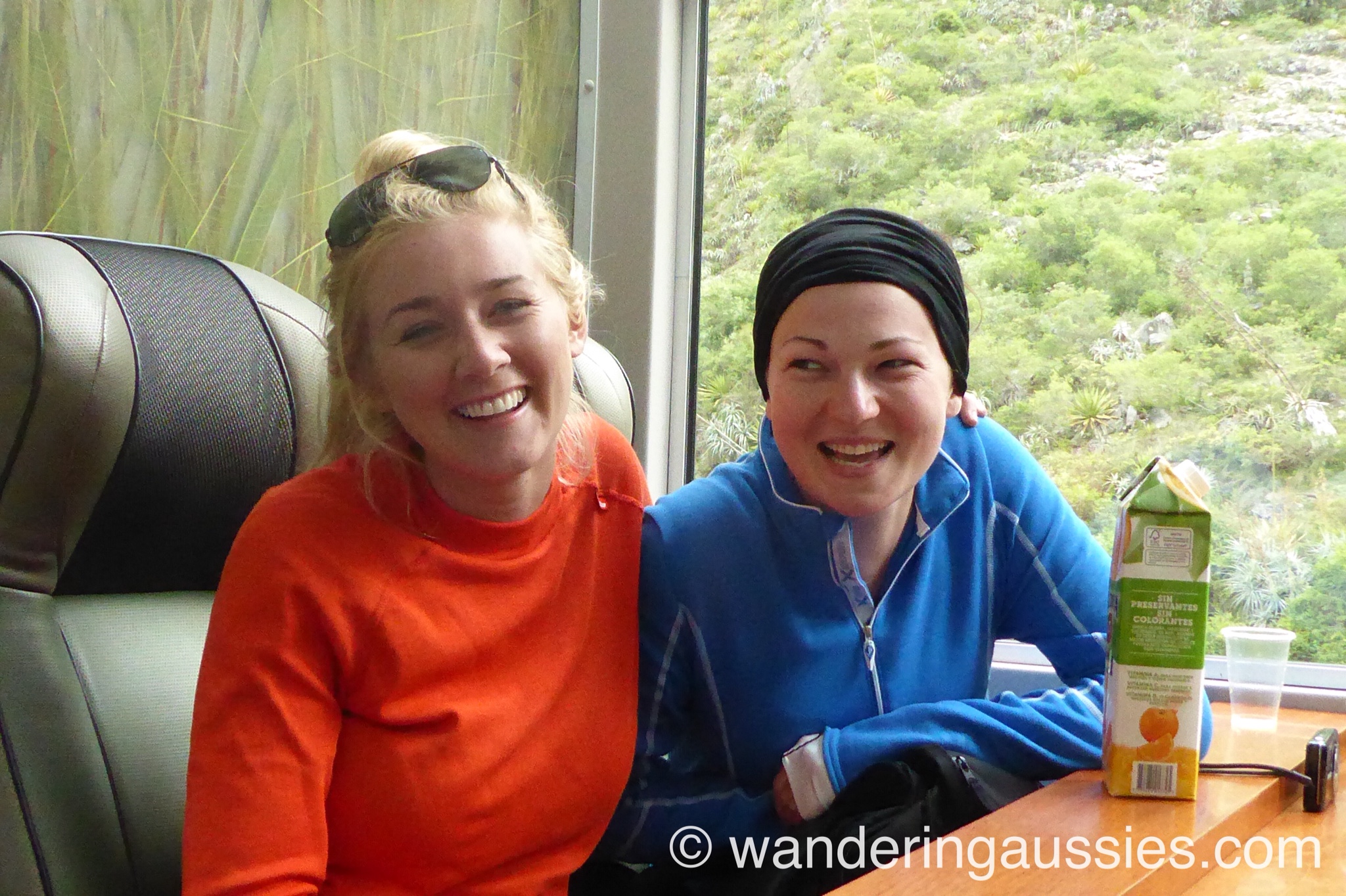 Back down at Aguas we tried the Inkaterra cafe – closed due to renovations, the Inkaterra Restaurant – not open for an hour and finally a little cafe up a side alley. Perfect to rest recover and eat. Desafortunatemente my fish was a little, well, fishy – so I just had chips and water! An hour or two later we had collected our packs and were back at the train station ready to depart. I quickly grabbed a queso empanada (meat just seemed to be a little to dodgy for my stomach) and we found our seats on the train opposite Troy and Candy from the States. They were great company for this ride sharing stories of diving and travel – in fact I think I might have to visit the gold souk in dubai when we pass through just too see the wealth in that place!