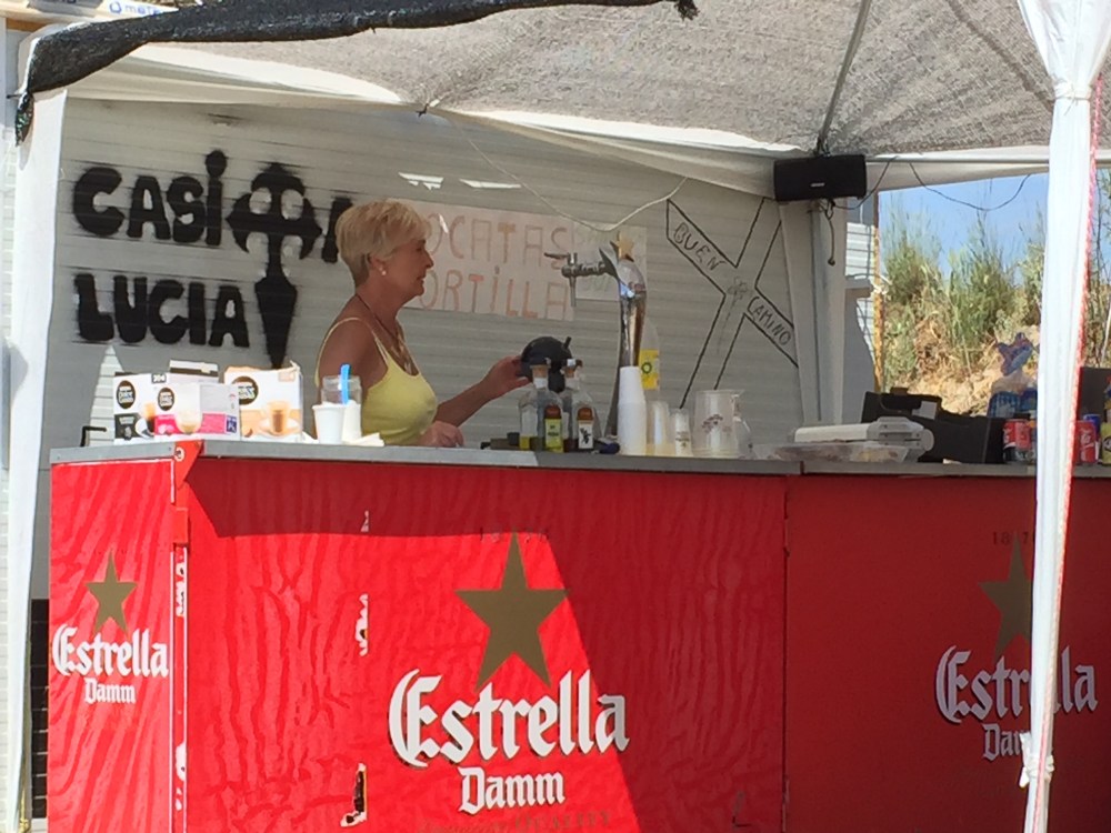 We headed to the cafe at the albergue next door so I could commence another surgery on my foot and saw the magnificent foot soak pool which I now couldnt use because one blister had been burst in order to permit me to walk. Whilst trying to order some breakfast the Mexican guy who had been passing us on and off appeared again at the side of the bar and offered to translate. For a day or two now he seemed to be the man who was anywhere anytime. I first met him when I was walking up a hill (slowly) and he kept pace with me and shared some wise words about resting every one hour one hour twenty in order to ensure dry feet and this enabled him to walk 30km plus per day. He encouraged me to speak spanish and practice all the lessons I had learned from my wonderful Spanish teacher Katya in Brisbane (who also happened to be from Mexico).