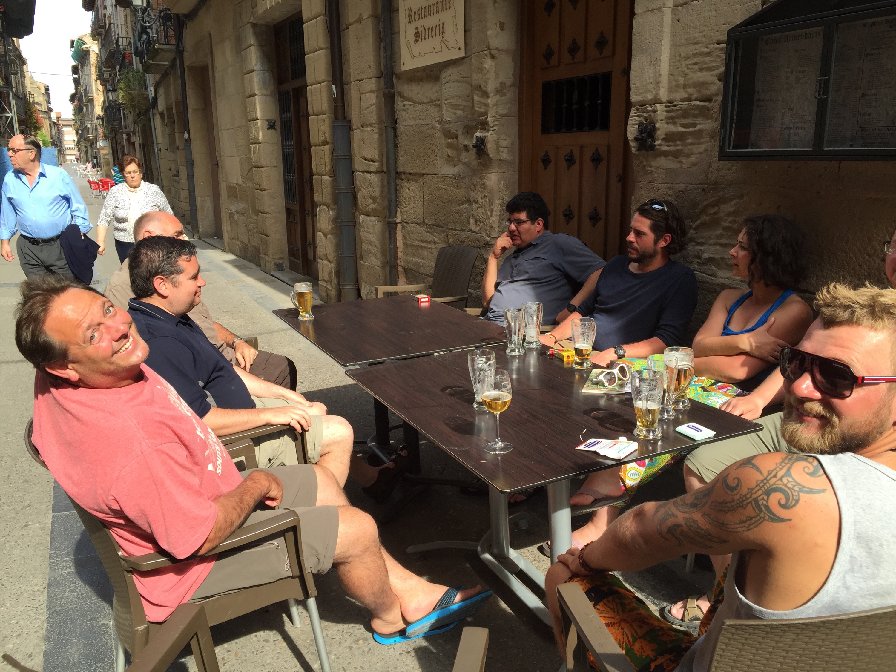Anyway on the way to Los Arcos he was in the cafe, then he was under a tree somewhere up a hill, then we stopped at a bar in the middle of nowhere for about 15 minutes (following his advice) and as we were about to leave I noticed he had miraculously appeared in the corner of the annex shoes off, socks on drying, relaxed as if he had been there all day.