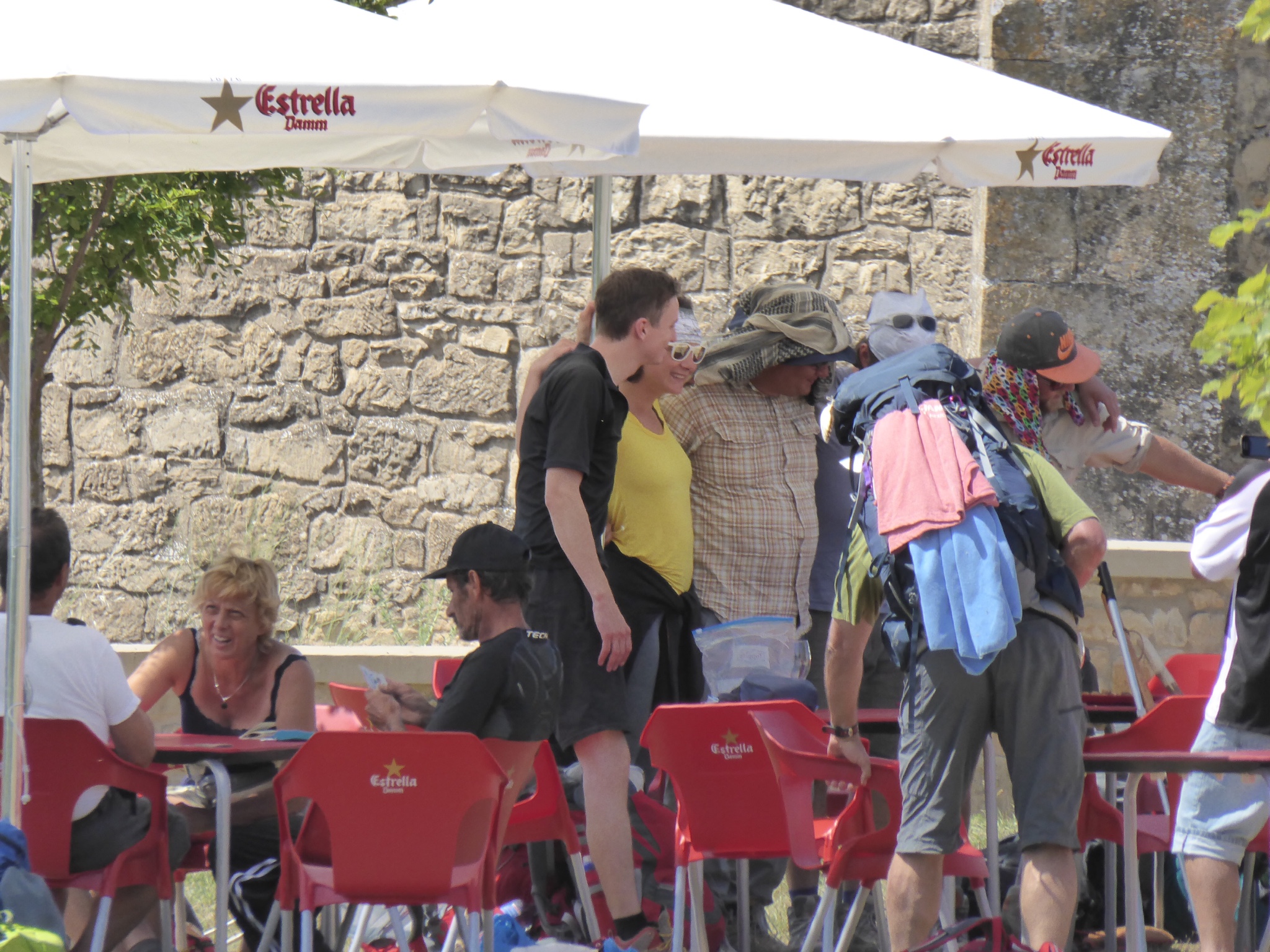I thought that would be the last time we would see of him. But then at the top of the worst hill imaginable in unbelievable heat, he sat under a tree with his shoes off and socks drying – he was almost in Yoga pose and I thought he was like Yoda awaiting the Jedi. The lady at the bar had told him that last hill was known as the donkey killer and now the worst was over! Thank heavens we werent donkeys! Dont know what happened to the Frenchman with the nice ass either – I couldnt see any dead donkeys down the hill.