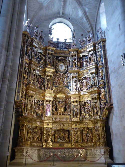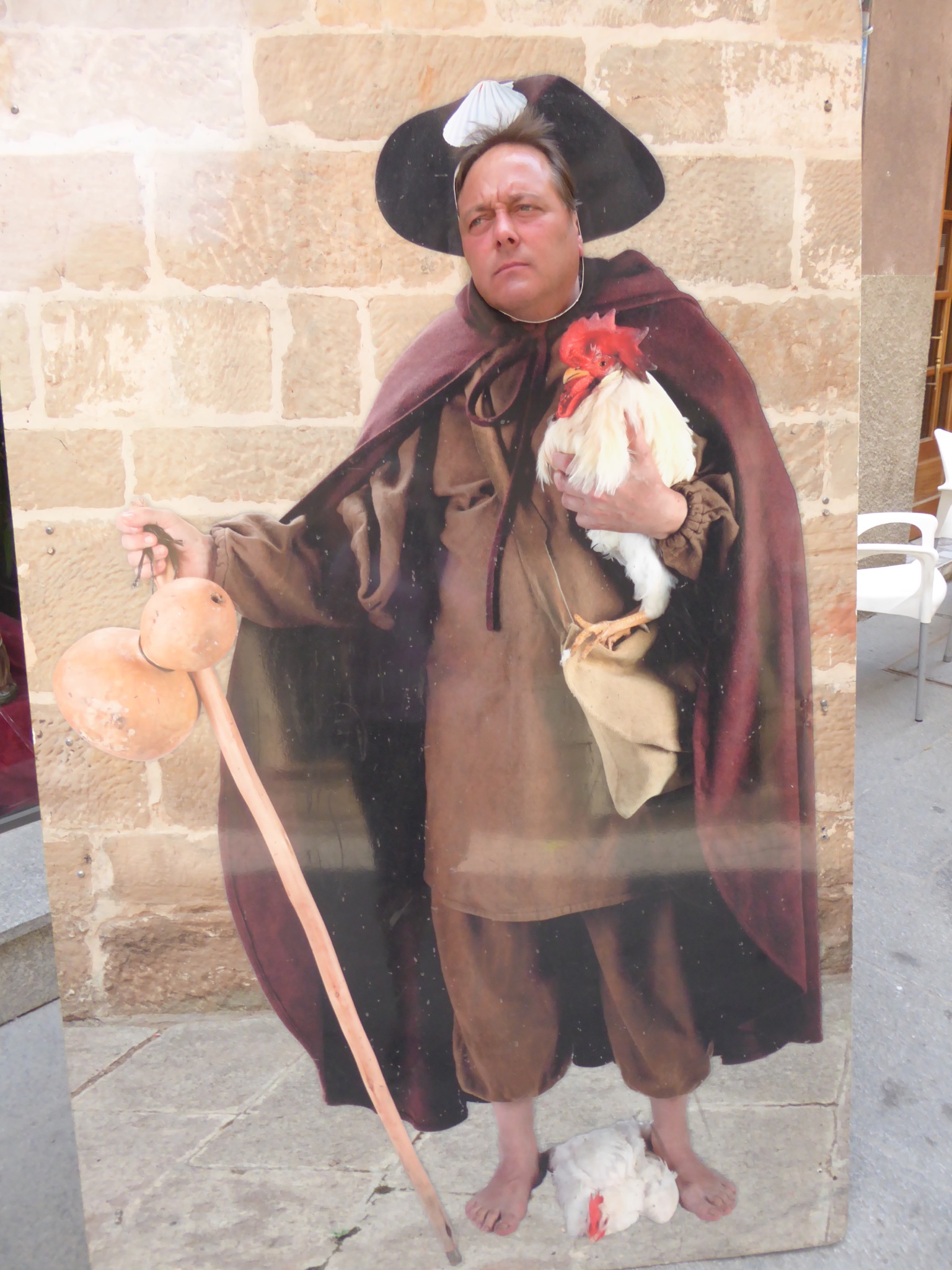 We finally hit the road with a not too difficult plan to get to the chicken town as we have decided to call it. You see Santo Domingo del Calzada (Saint Domingo of Calzada) set up one of the first hospitals on the Camino to care for sick pilgrims back hundreds of years ago. Some time after he died I think, a young man who was a pilgrim with his family stopped in town at the inn. He rejected the advances of the inkeepers daughter so she accused him of theft and he was hanged. His parents went on to Santiago and on their way back found him still hanging but alive. It is believed that Santo Domingo held him up and stopped him from choking. Anyway they went to the mayor or boss (whoever that was) and said our son is alive – he was eating roast chicken at the time and said “he’s no more alive than this chicken on my plate” at which point the chicken jumped up and ran away.