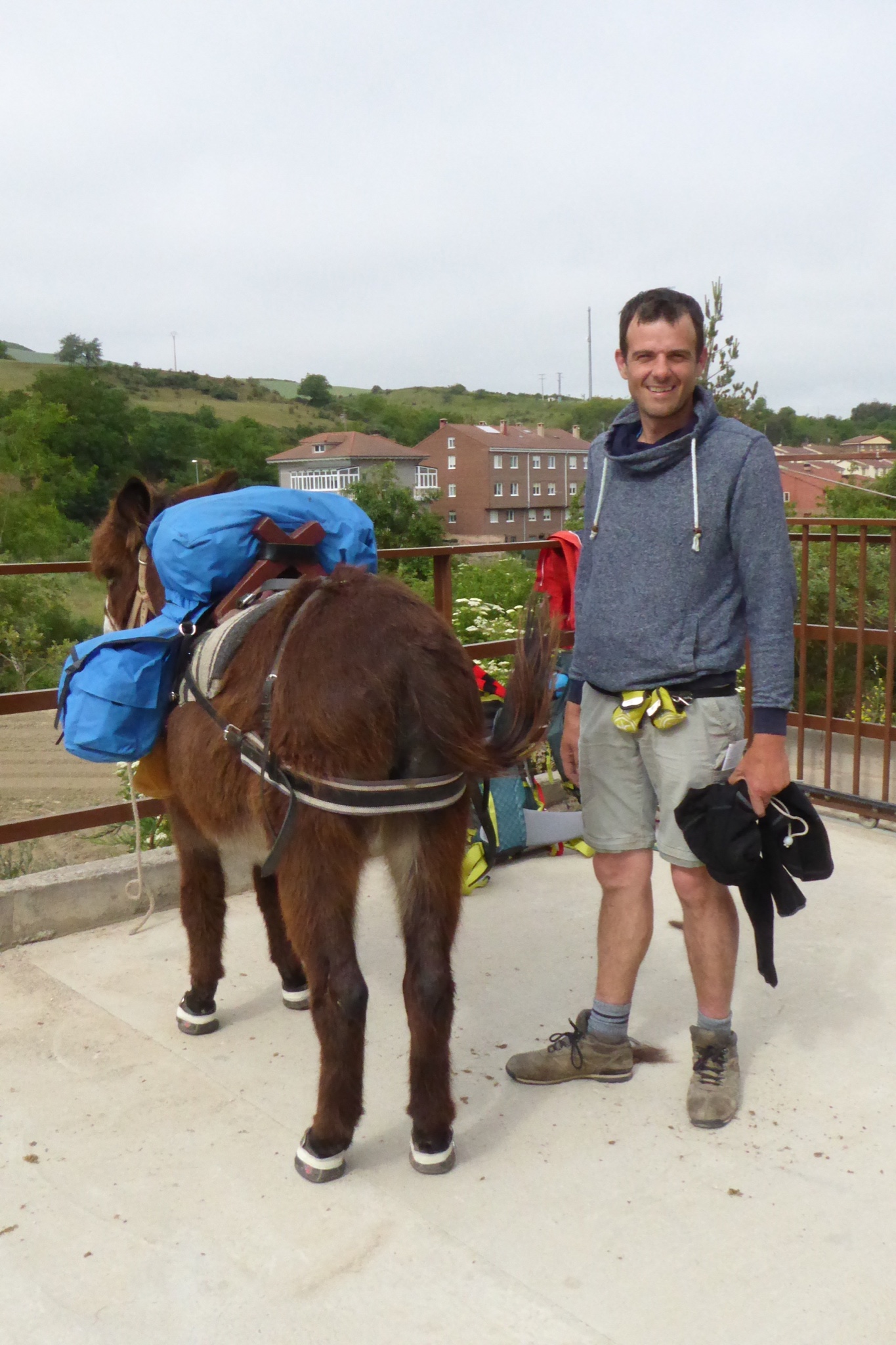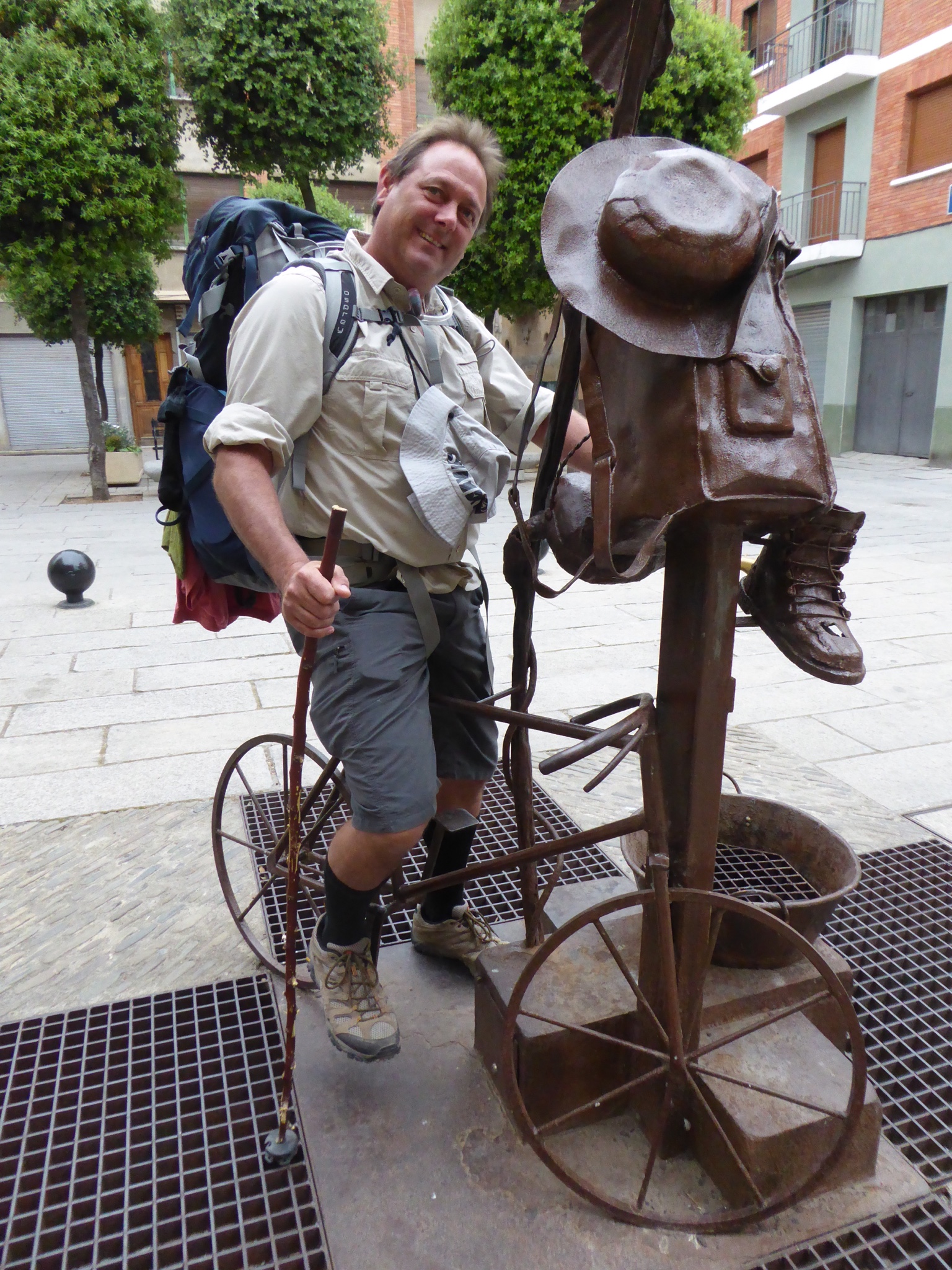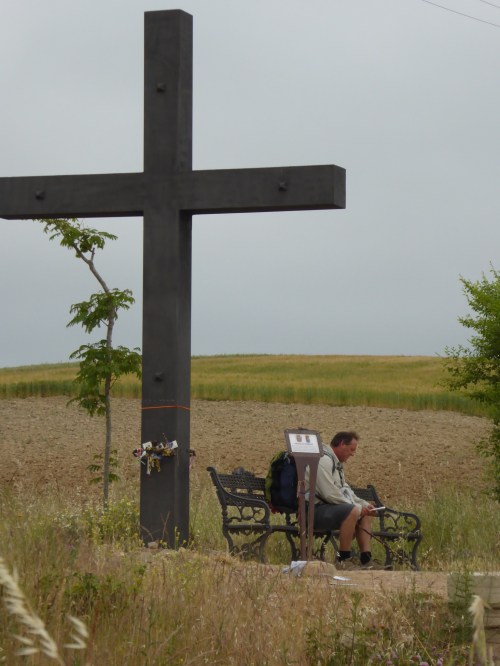 We tried to start early again today, headed out of town around 9.30am! Oh well all the serious hikers had gone at 4.30 or 5am and there was no way we going to catch up anyway. It was actually quite chilly so not such a bad time to leave anyway. Husband pulled his socks up to dry and replicated many of the European hikers we had met. Also hitched a ride on a pilgrim memorial briefly.