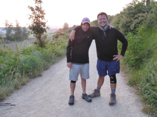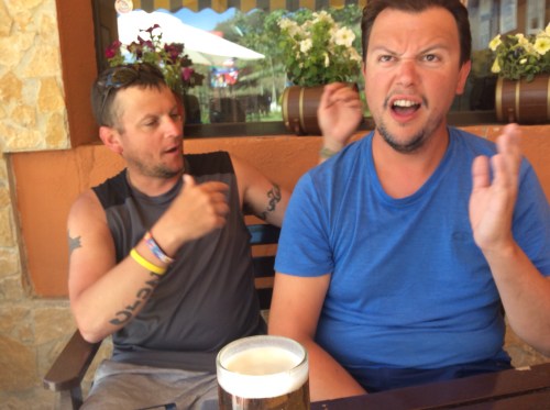 Well the last 12kms was a killer for us both I think. We stopped at a great rest stop with a foot rest on top of the first hill into these mountains – in past days bandits apparently found this area great for attacking pilgrims! Thankfully not so common these days. We were overtaken by Jacob from Bilbao and a couple of others, then Michelle who had slept right in the middle of the path came speed walking up the hill with bells on! Not really but they were all splitting up for the day and walking at their own pace dependant on injuries and afflictions. A little way on Jacob was relaxing with a couple of French guys and a couple of bottles of red. They still beat us into town!