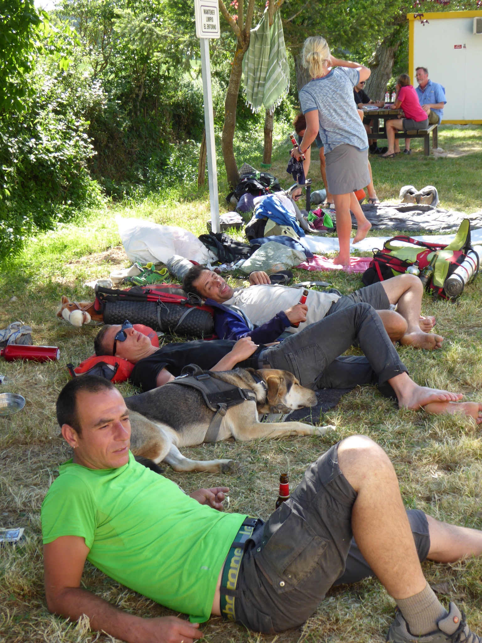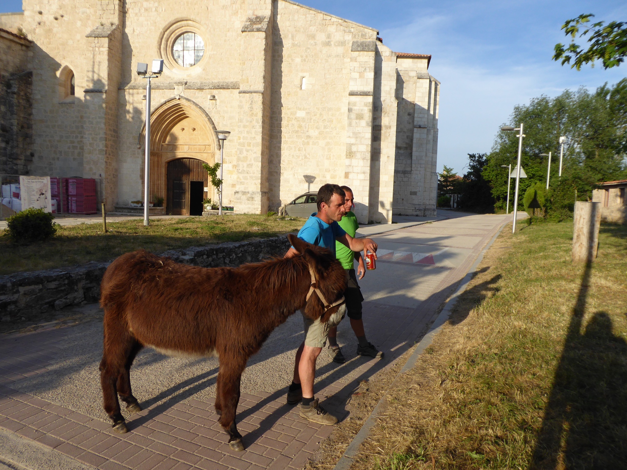 When we finally hit town our favourite Frenchman with his nice Ass was there again! And all the Belorado albergue clients were lined up along the grass opposite the Albergue with Antony and Marten ready to sleep the night.