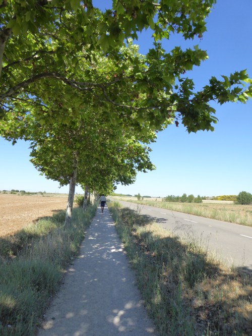 Leaving Sahagun was a pleasure because a) it was probably my least favourite stopover on the Camino and b) the Real Camino track was both well maintained and almost entirely covered in shade for the whole 19 km. It was also quiet and easy as it followed a local road parallel to a freeway but far enough away that we were not be bothered by the noise, nor by any traffic. I would go so far as to say it was the best section yet for walkers (probably for bikes and donkeys also).