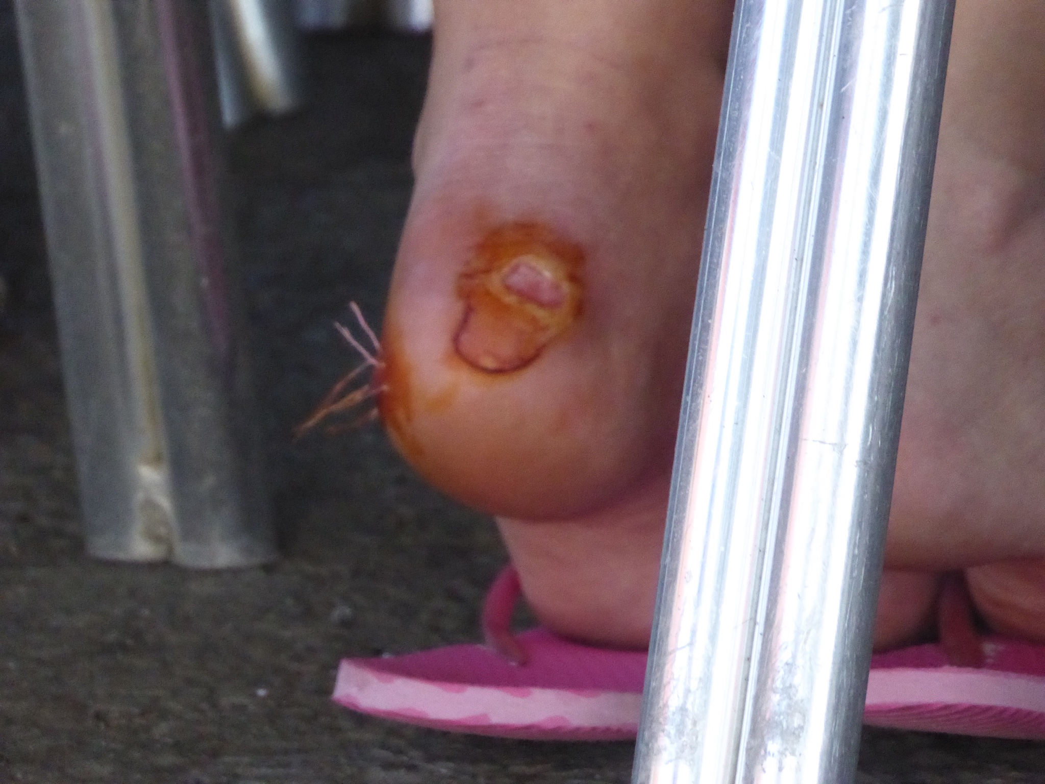 I think the most disturbing sight of this day was the foot I observed across the way at dinner. If you have a weak stomach do not scroll down. I am not sure exactly what is happening on the side of her foot (apart from the thread through the blister trick) and my beloved told me this photo is xrated and maybe should not be shared. I thought you might be interested in knowing though that I am not Robinson Crusoe with foot pain as this lady clearly has a serious problem – she sadly missed the information session from my mexican yoda – these sort of busted blisters make mine look like nothing more than a sweat pimple!