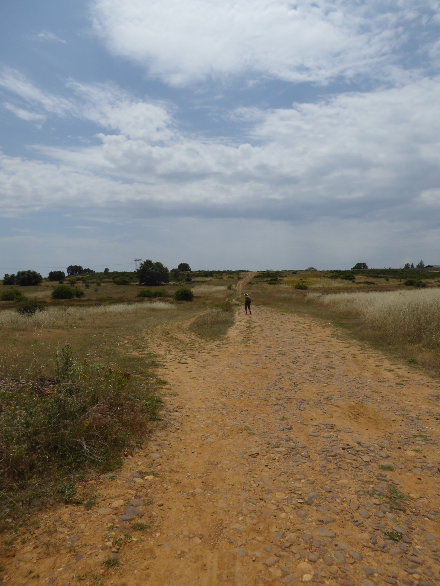 Well those feet still managed to carry me along for another 20k’s out of Leon after quite a late start. We watched our bags leaving for the first time when the transport man arrived at Hospederia Pax just as we were leaving and we begged him to let us hop in too. He laughed and drove off. Before leaving Leon I finally found a farmaci with a form of strapping tape. Not the sort of tape I was looking for but strapping tape none the less and it worked to hold my heel tight. I also picked up a pair of Teva sandals to give my feet a break now and then in the heat – and to help me out in the case of rain. My beloved was eager to accompany me on the shopping expedition before we left town (not) and found himself a new belt, some hiking socks and a couple of other things in the pilgrim store.
