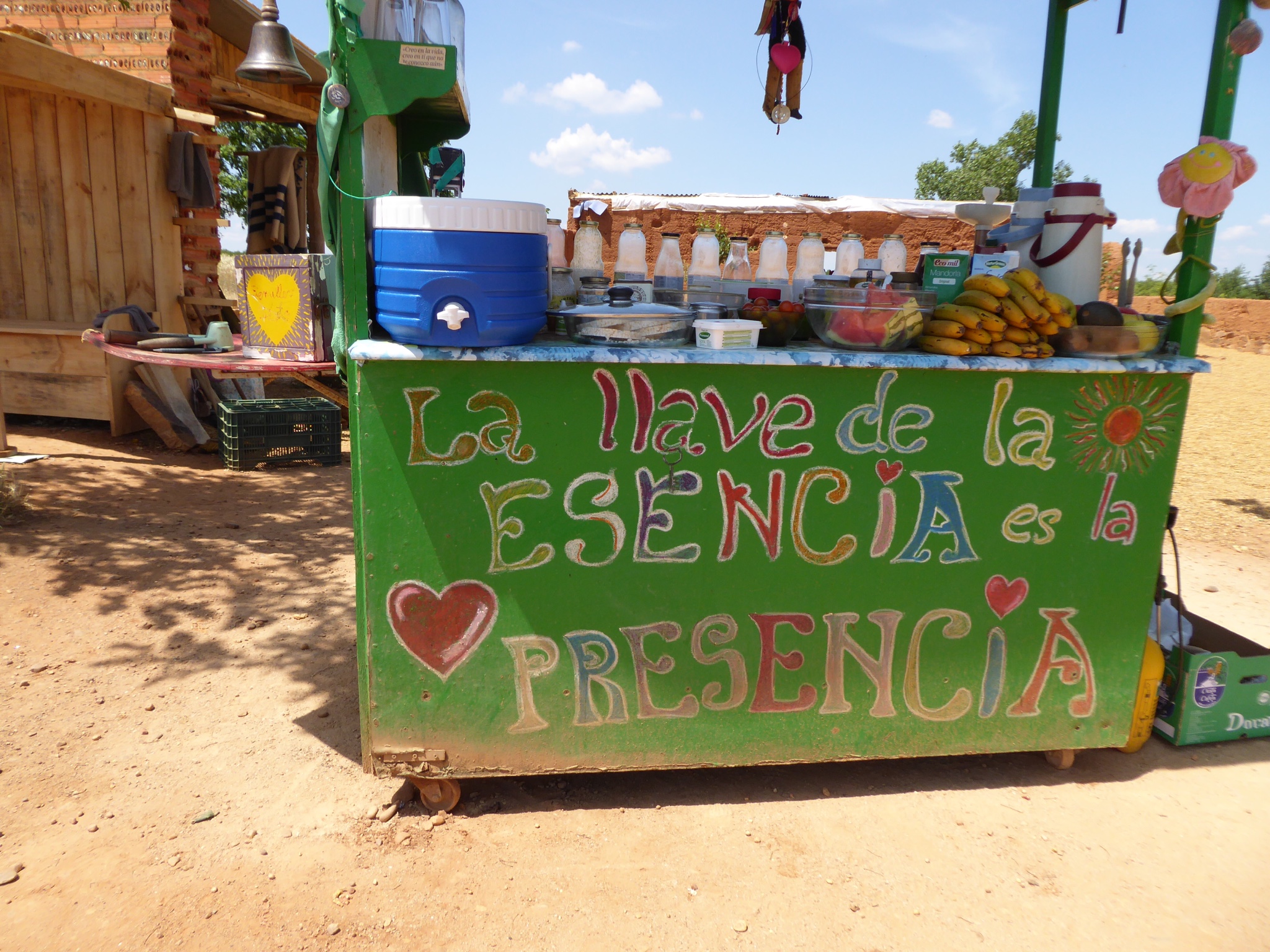 We then headed on up the track and eventually came upon a little donative fruit stall. David (or Duveed as he calls himself) has a little hangout on the way in to Astorga where he wants everyone to be happy. He had the most beautiful cold fruit – pineapple, watermelon, cherries – dark chocolate – he had some juices there he had made but the lack of washing up facilities made me a little wary of the containers they were kept in. He has lived there for 6 years apparently and is currently renovating – building some more shade for the hoards of visitors he must get every year. I asked him if he was related to Minchim at Albergue Verde as he too wanted us to be happy. “No we are very different – I do not do yoga – I just want to be at one with the universe.”