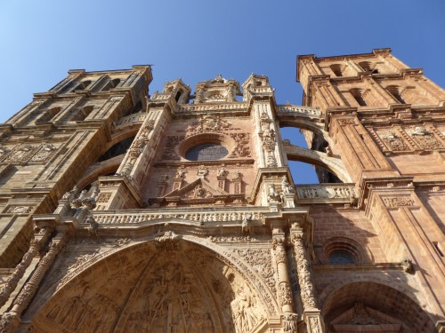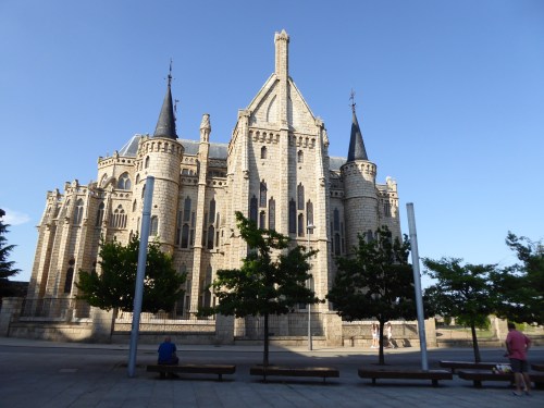 We went across the road to the Cathedral and sat outside to admire – as we were sitting there the man came out and closed up shop – he told me I could attend Mass for free in the morning and see inside then – well muchas gracias senor! We then went to the palace and while the lady served someone else we walked around the shop so as not to hover. I then went to the counter and asked what time are you open til and she said “seite media” (seven thirty) and held up her watch which said precisely 19:30 – “You are too late you must come back tomorrow at diez (ten).” Her stoney black eyes confirmed she was not to be argued with. We admired that building from the outside as well! So much for site seeing in Astorga!