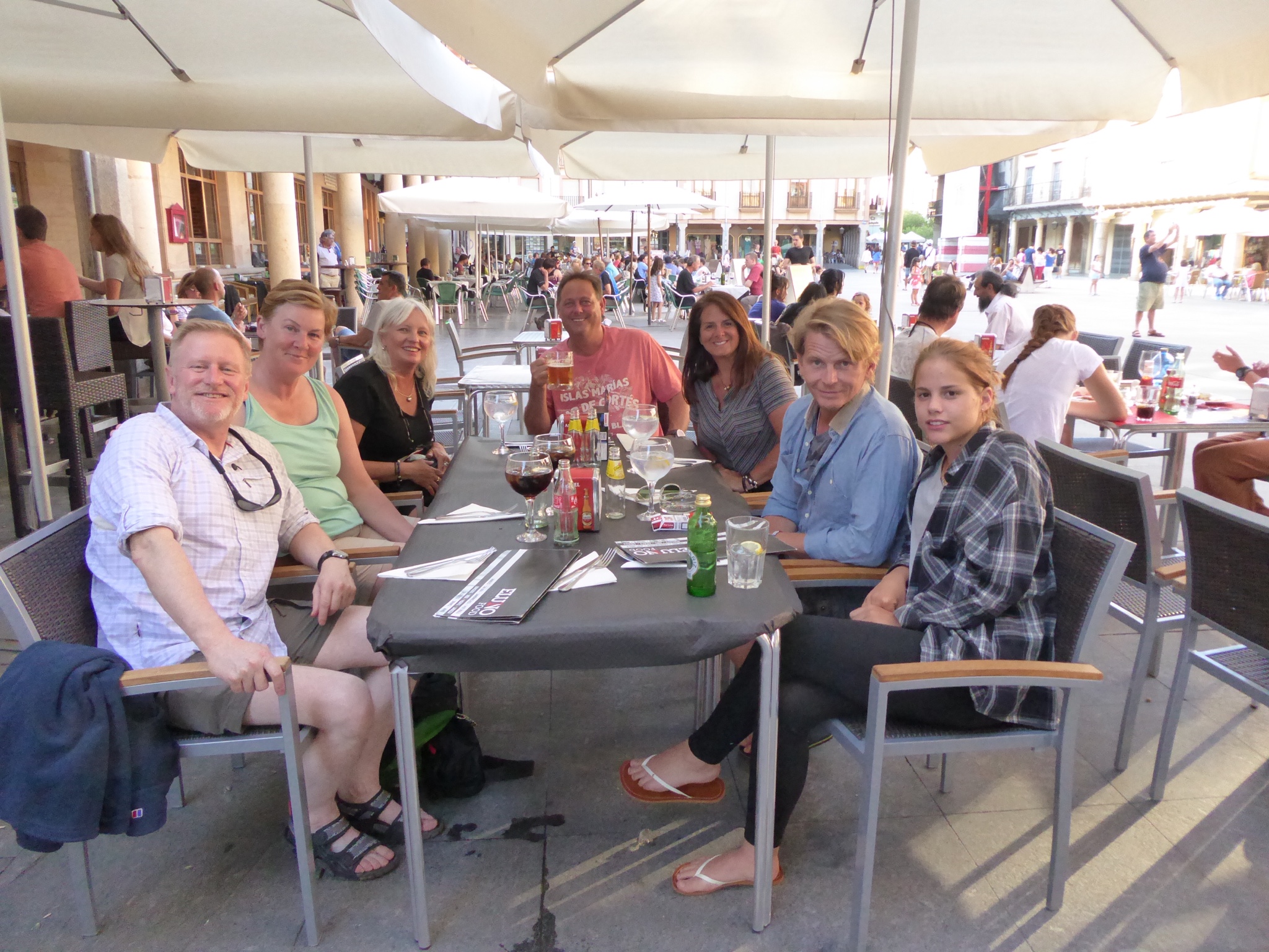 Fortunately my beloved had run into the Texan and the Irish couple who invited us to a restaurant they had discovered at lunch time (they always arrive early apparently). We had all met at Albergue Verde so in Camino terms we were now old friends. Kim and Carina and her Irishman were good company. We were also joined by two Icelanders. A short while later two pommies (Englishpeople) who we had met two nights before joined us. They informed us they had been locked out by Jesus. Yes thats right – they were staying at his albergue when we were there and went across the road to see some friends and when they returned, during the spectacular light show, they discovered all the gates were locked and their bags were still inside. They went back to the other albergue and paid for a double room for the night and couldnt get their packs until the morning. I’m sure you are as shocked as we were, we thought Jesus was a nice bloke too!