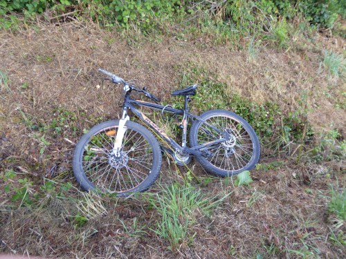 Finally we reached the top, John was nowhere in sight now. We started down a straight long stretch and as we descended we could see in the distance what looked to be a bike across the road. There were a couple of people moving back and forth. I said to husband “I hope thats not our friend down there, I think he’s come off his bike.” We kept walking. As we got closer we could see someone sitting on the side and another person crossing the road. Husband suggested I take a picture of the magnificent view to our right. We were up quite high still. It was a distraction for a moment. But as we kept going the event unfolded.
