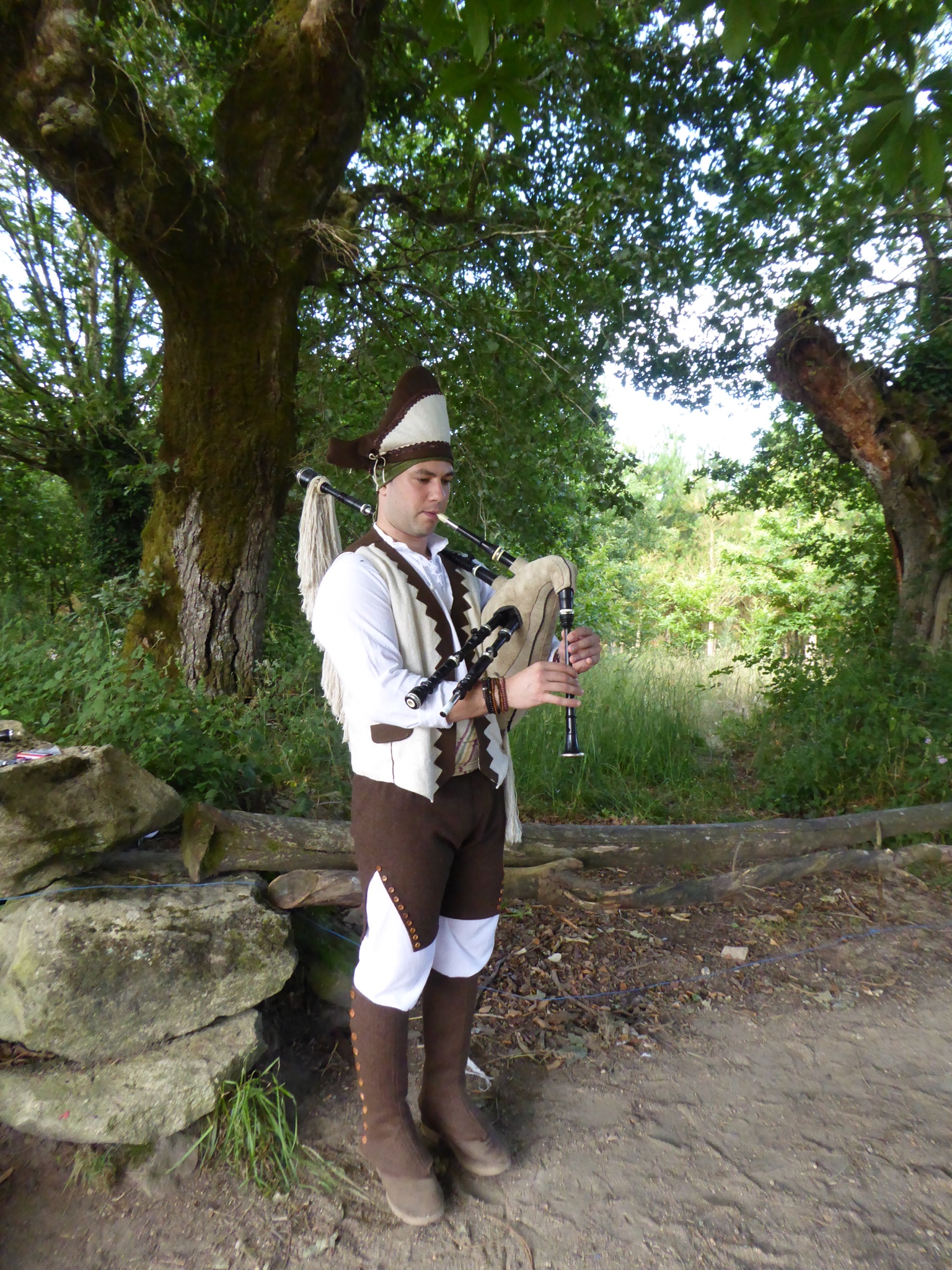 A quiet day. Not! We left Barbedelo at around 8:45 and missed saying goodbye to Shirley and Steve. We were at the 108km mark so in only 8km we would pass the 100km to go mark – yee ha! My feet were so happy to hear this that they sped up and we killed the first 8km in record time! Before we went too far however we hap’d upon a bagpipe player. I threw him a few coins and he winked at me. My beloved noticed too. He was a cute bagpipe player! Who would have thought Spain had traditional bagpipe players?