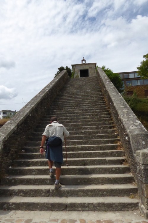 On the way into town we spotted a couple of pilgrims soaking their feet below the bridge. Looking up at the stairs we had to climb and down at the stairs they had climbed made the idea somewhat unappealling. I had booked a room with a bath and that would suffice for today’s cold water pool!