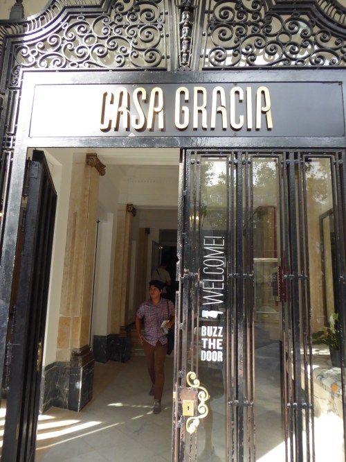We arrived in Barcelona on a beautiful evening and headed to our hostel “Casa Gracia” via taxi. The lifts were a bit dodgy but the double room was fantastic (equal to a suite in any 3 star hotel) and there was a talented duet singing in the bar downstairs.