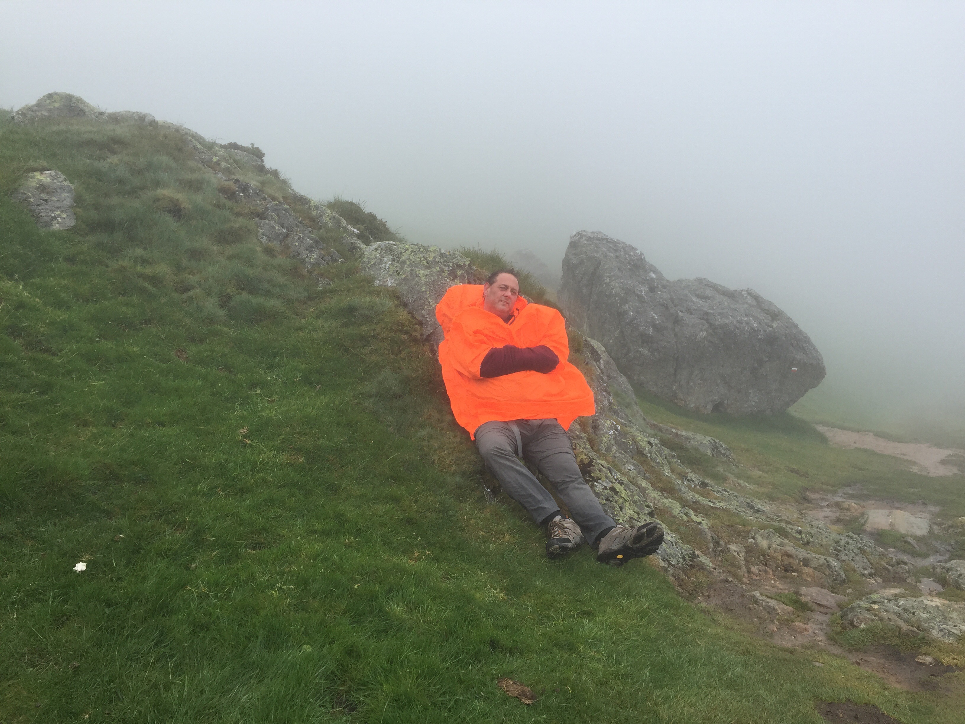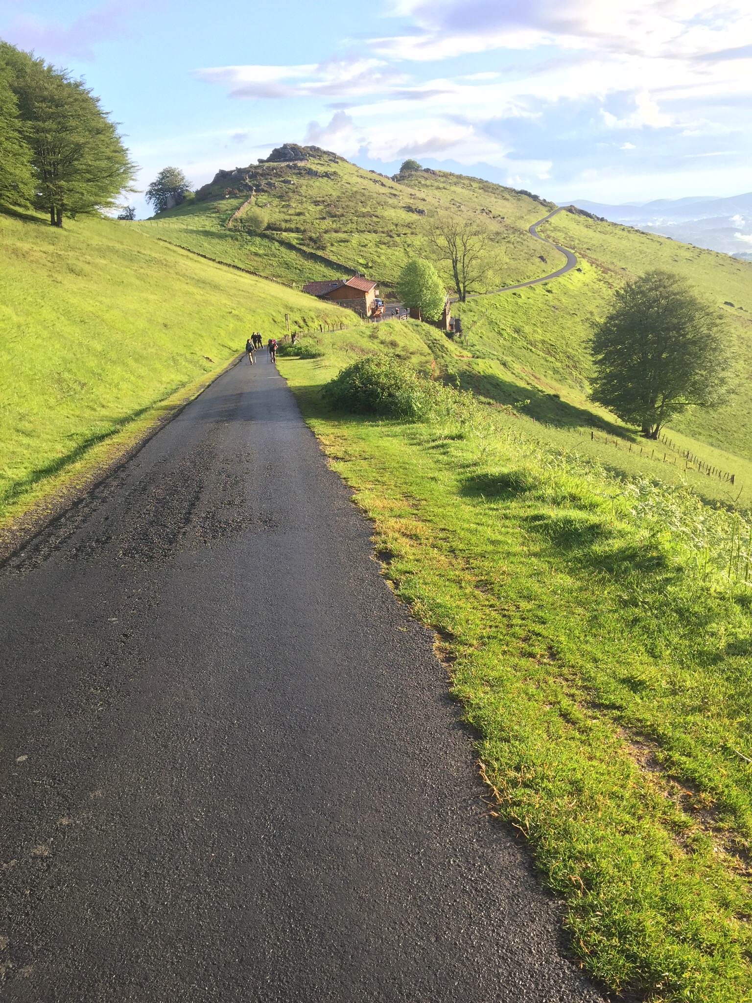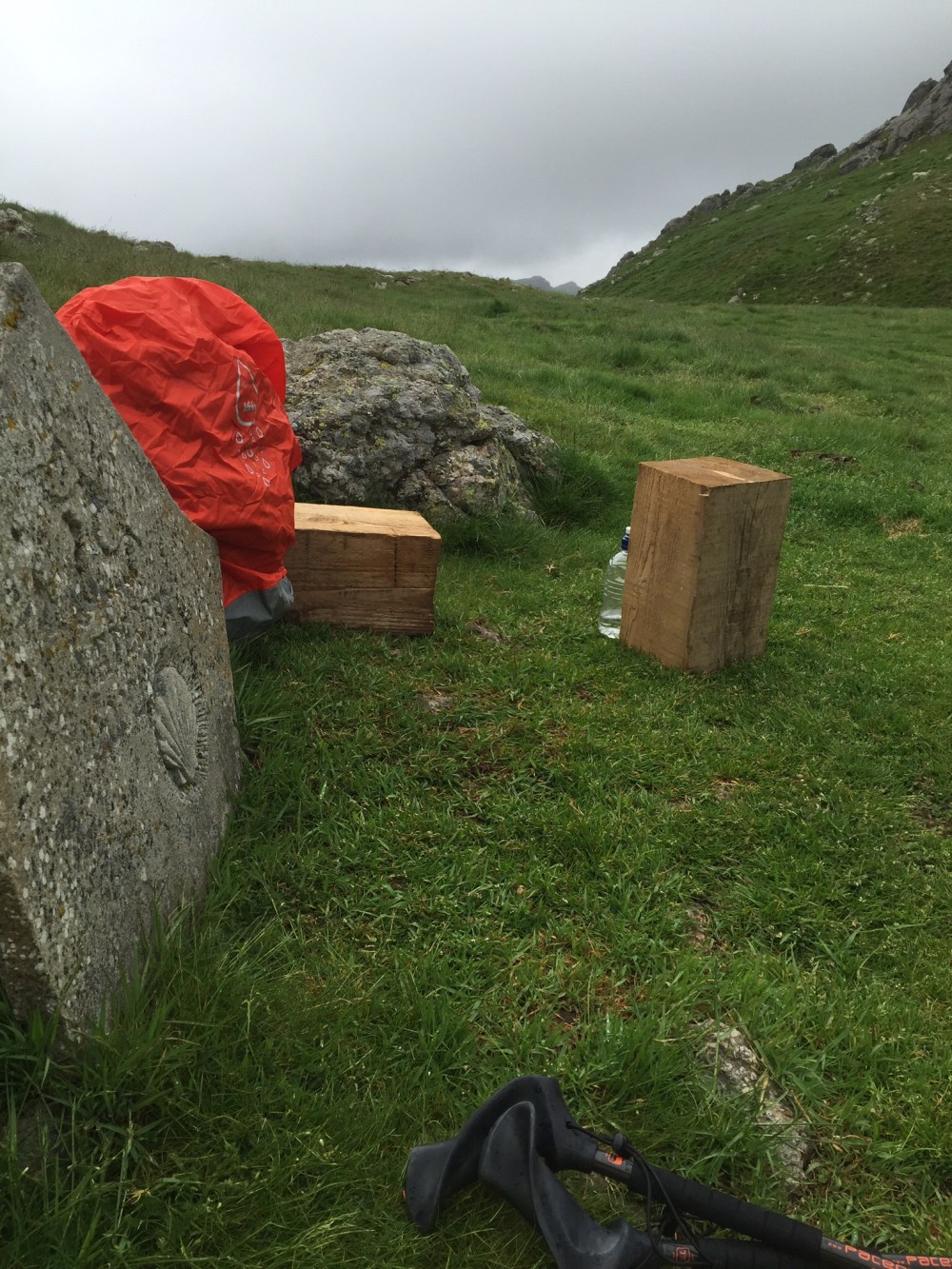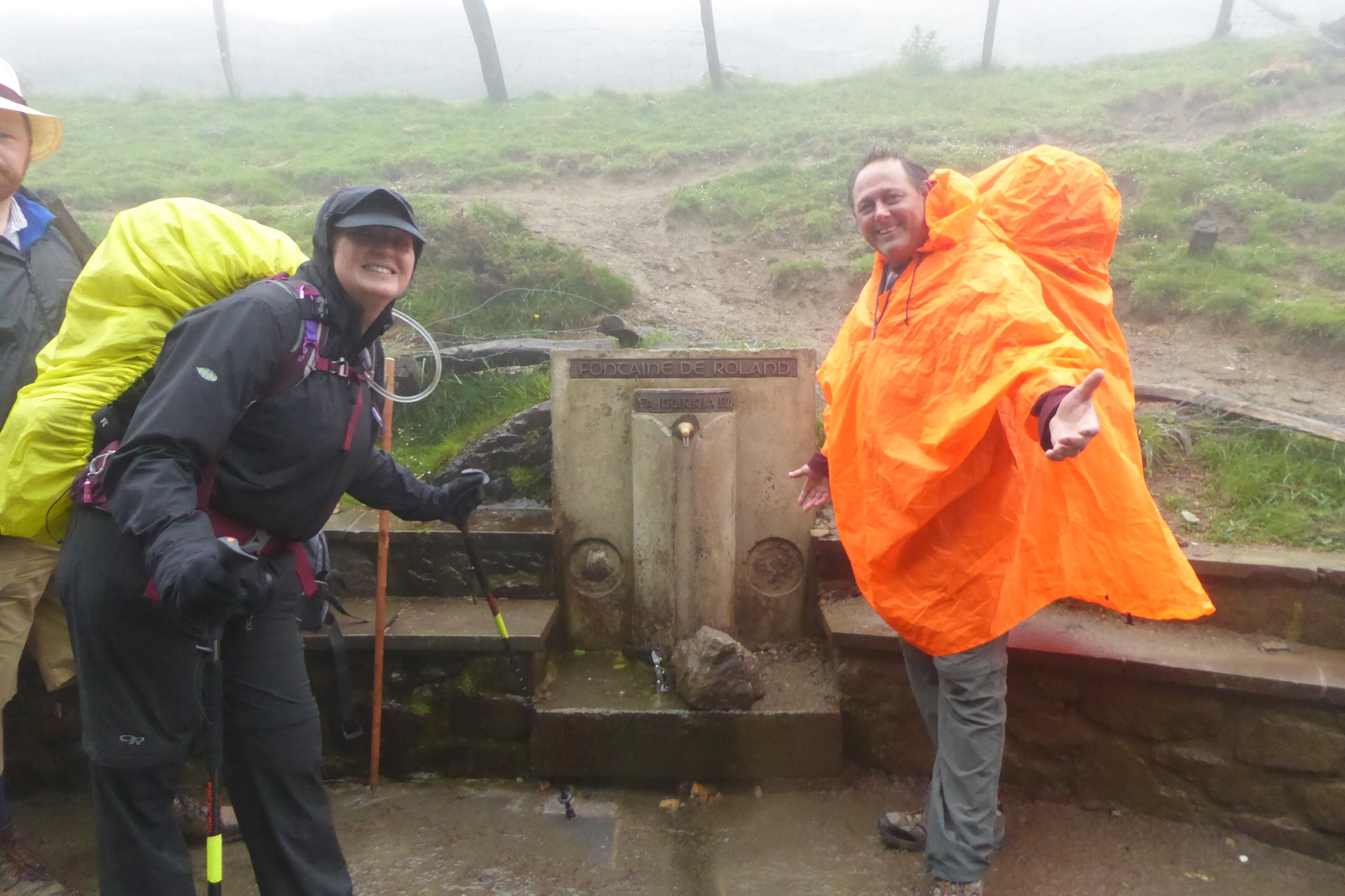 Like a stroll in the park for some that is. While we were eating dinner last night there had been some rain and thunder and, just as the resident comedian and chef at St Jean had predicted, it was not before we had reached Orisson. This rain had created the beautiful rainbow yesterday so we went to sleep on full stomachs literally sleeping above the clouds.