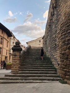 My knee had been a little swollen from the walk down the Alto del Perron yesterday, so I taped it up with the rock tape I had brought from home. (This was after indulging in special foot and leg massage for 15 euro at the albergue.) My beloved was feeling slightly unwell but, as anyone who has encountered man flu will know, he convinced us he was suffering beyond compare. He downed a cold and flu tablet and led us down the cobbled streets unaware of the secret rendezvous planned on the bridge.