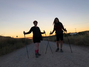 Well we heated water in the only available appliance which was the microwave. Had cappuccino sachets and tea bags. Made a sandwich each for first breakfast and a half each para llevar (to take away) for second breakfast. We managed to leave at 6.20 so it was still very dark and the whole town was asleep save for the people in the room right next to ours. This, as it turns out, was a stroke of luck because no sooner had we checked everyone had everything and shut the door quietly to head off on our way, then speedy discovered her hands were empty. The poles were still inside next to the bench behind the door. The door that was now locked!