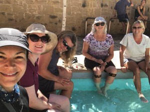Anyway there were no dark clouds today and I was in a speed zone. I was remembering my Irish gurus words “use your stomach muscles”. I’m not sure if it was the muscles or the hunger but either way it was the stomach that saw me speed into Azofra and the magnificent footpool where our Canadian friends sat with feet up and with cold beer just for us. Yep – love those guys!