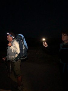 A short while after we had left the town a sign had been knocked down and we could see a pilgrim had taken a left but we walked back and forth with our apps suggesting it was straight ahead. Maybe it wasn’t a pilgrim. Husband whistled them and their light disappeared. We kept walking wondering where it went. These headlamps aren’t that strong – we may have just walk too far to see them or it may have been a farmer with a torch. Either way we walked on.