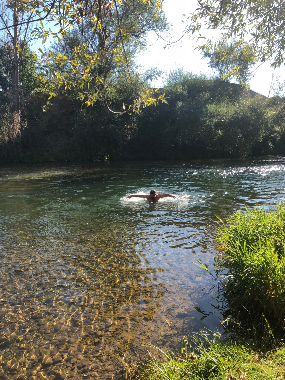 The sommelier led us down to another beautiful river but it was much colder than Carrión and he was the only one brave enough to immerse his entire body. The water was magnificent on my feet though and I walked back to the albergue feeling revived. I must have looked revived too – the hospitalario was shocked at my recovery! Apparently after a shower and a rest one can appear to have transformed back into Wonder Woman! Trust me I still felt exhausted. The Fräulein and I took advantage of the donativo massage and I admired the hospitalarios medical kit for helping pilgrims with blisters. I didnt need it as I tend my own – but it seems some people walk on until there blisters are beyond repair!