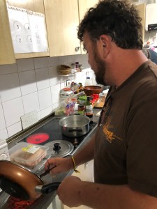 Thanks again to the unending talents of the Sommelier we had another home cooked meal in the albergue. A couple of basque girls joined us so I had a bit of a practice with my Spanish as we enjoyed a turkey dish with the best salad on the Camino, with good wine too of course – for a grand total of E4 each! Muchas Gracias to the Sommelier xx What a guy!
