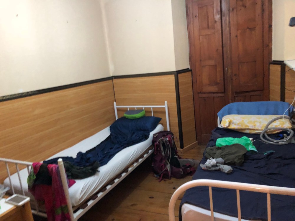 She stamped our pilgrim passports, registered our names, took our E5 each and led us upstairs to our own twin room with ensuite! What a lady! I lay on the bed feet up the wall for a while until I could drag myself into the shower. I lay back down again and rubbed voltaren in feet, put compression socks on and put my legs back up the wall. I sculled a hydration drink and felt some sense of normality come back.