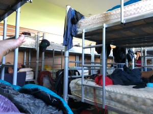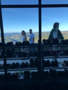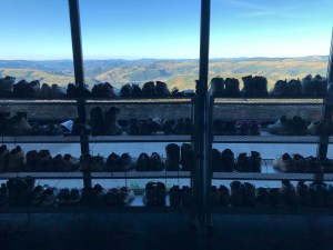 The view from our dormitory was spectacular but it was the shoe rack that had the best view. The tourists came from up the hill just to admire our pilgrim boots. The pilgrims went outside to admire the view.