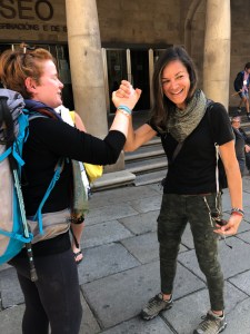 It was a short but emotional walk. I stopped every little while and sent an update to let everyone know we were close. Our friends from yesterday had mostly moved on or were attending the special 12 o’clock mass where the Botafumeiro would swing. We were not rushing. We would arrive safely and without haste!