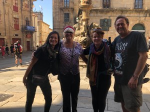 After maneuvering our way past the tourists that were hovering around the back of the Cathedral we finally reached the gate into the old city, the Galician Piper dressed in traditional garb piped us into the square. It was magnificent. We were done! 800kms – probably more with all of our extras to albergues and back, the odd mistake and the zigzagging downhills. Even with the odd hypotenuse it was a long long way and we now could sit back and relax!