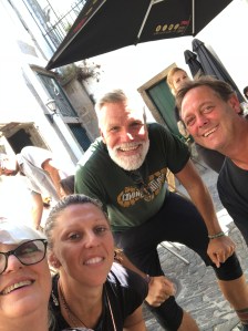 We took some photos and sat for a few minutes absorbing the enormity of the challenge – especially the last couple of days. We then went around the other side of the Cathedral to discover our new hotel was even closer than imagined! The taxi from our last hotel arrived with the bag we had left and we went out again to celebrate and bid farewell to friends.