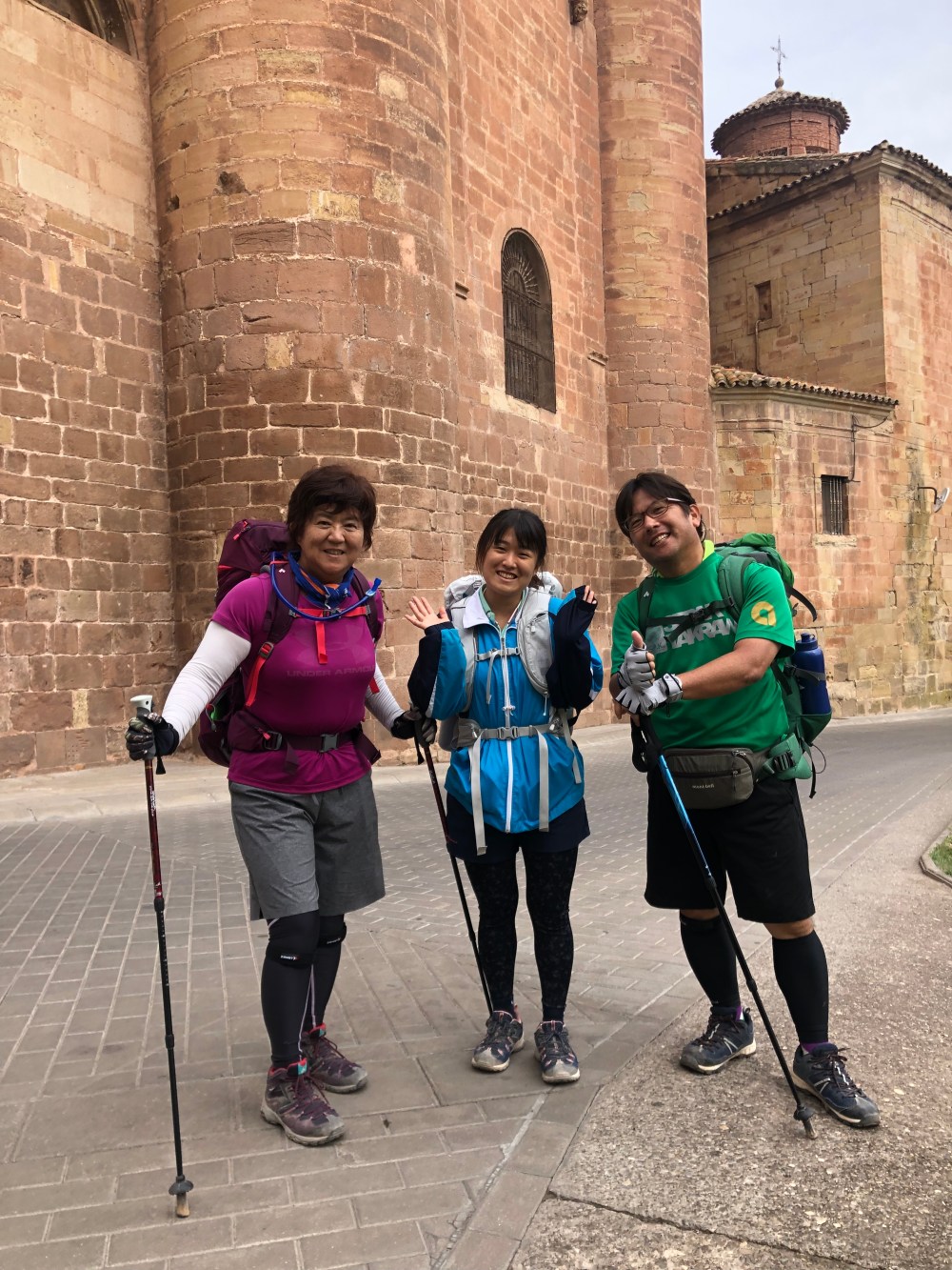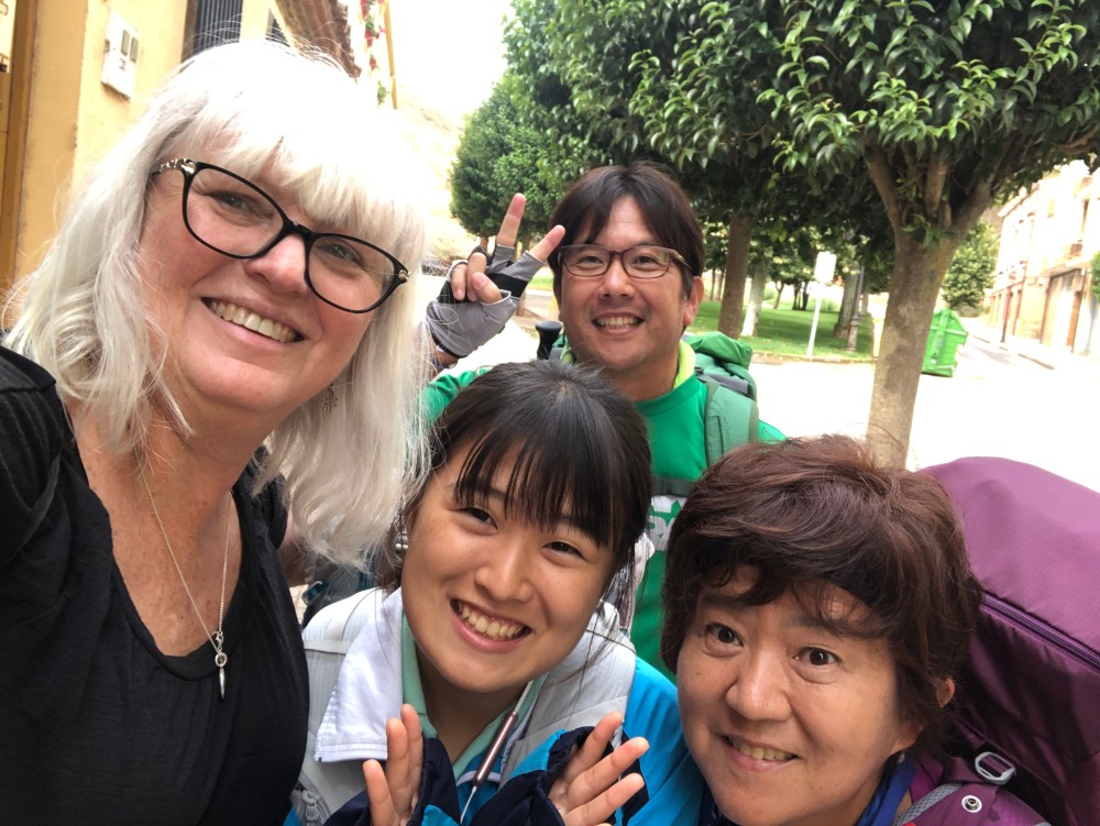 Before going to look for a physio I had a message from John and Yoko and Namane – you remember the Beatles don’t you? We met just out of Saint Jean Pied de Port and we said goodbye when they left the bus at Zubiri. Anyway they were heading off to somewhere after Azofra but before chicken town, so I walked with them to the edge of the pueblo. Just an absolutely lovely family and I was glad they stopped long enough for me to pop round and say hello.