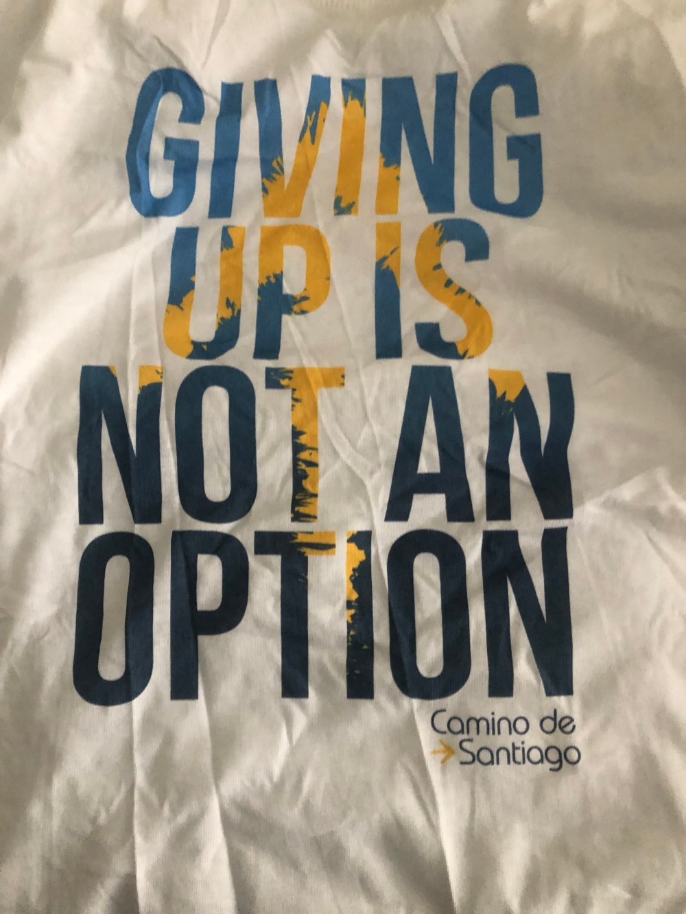 Thankfully the girl with the sore leg who had stayed two nights went to get the bus – no point causing permanent damage to yourself we told her! Interesting concept…. I bought a T-shirt in Roncesvalles that says giving up is not an option! (It was the only T-shirt they had and remember I lost my luggage ok)