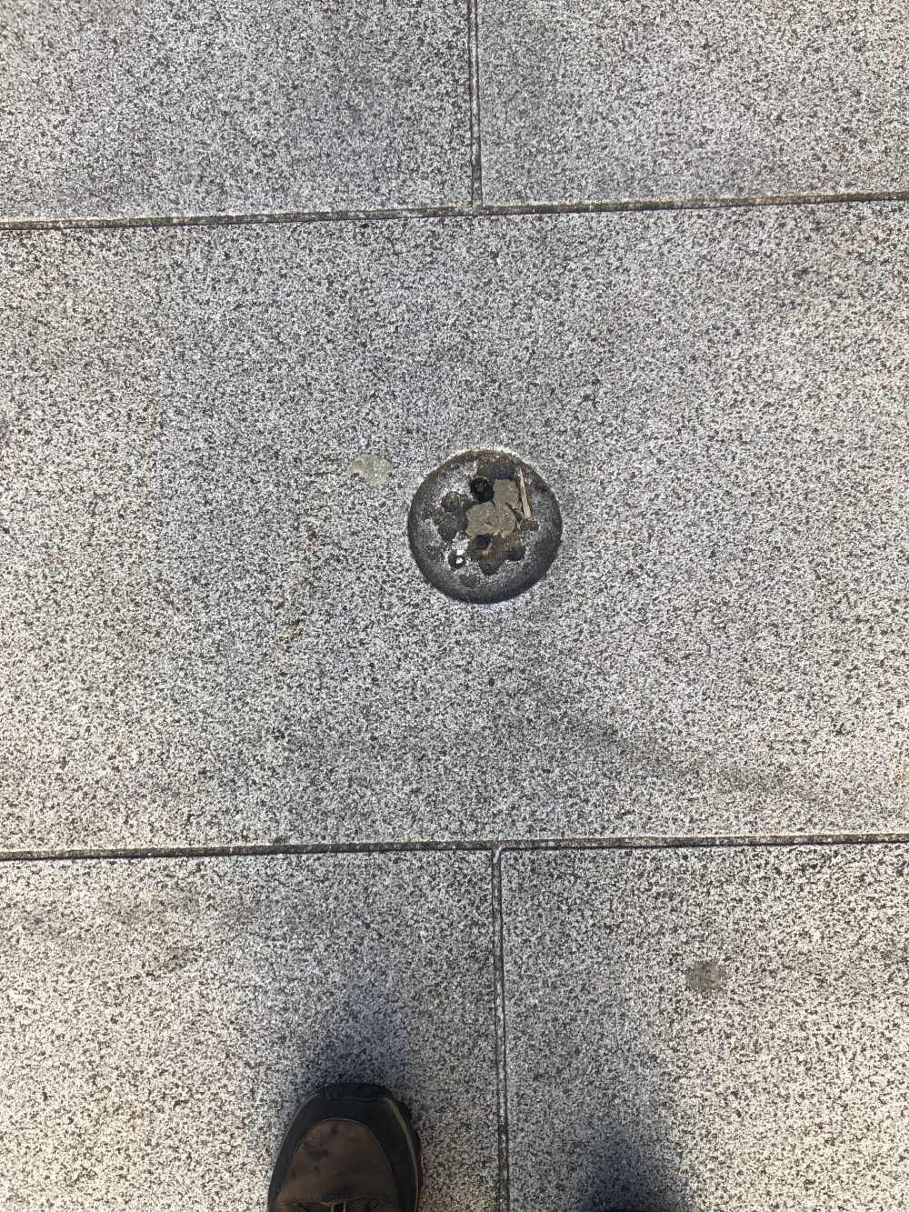 I finally reached the scene of the crime after passing the santiago de compostela sign and the statue of the Templars that are supposed to protect pilgrims. The missing paver was still missing. As were numerous others. If it hadn’t been one it would have been the other maybe.
