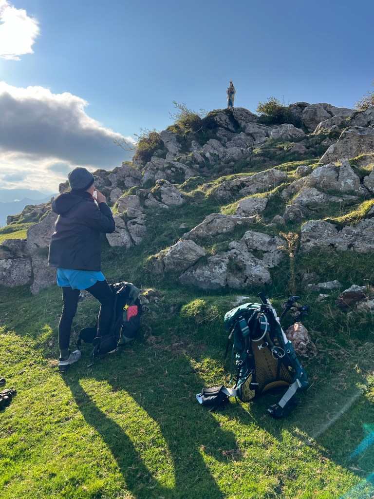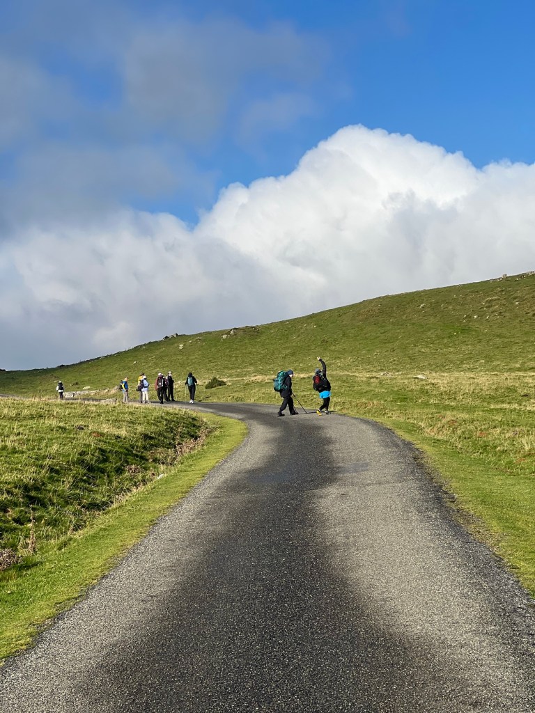 So after recovering from heat stroke in the chill of the French Pyrenees we all headed up for a breakfast of bread cereal and bread 🙂 Here I was also offered vegemite by a kind hearted country woman. I drank my coffee and ate my toast (with vegemite) and headed out again with Michelle and Janine again going up up up in an undulating way. Thats how I describe it anyway. Up steep up not so steep up steep again. Onwards to the first stop at the statue of the Virgin Mary for second breakfast. Orisson had packed a sandwich for me which was ham and cheese. i was forward thinking enough to grab some butter at breakfast which Michelle had stowed in her food bag. The spork I had hidden away was useful for spreading butter but not helpful for much else with bread crust as hard as a timber chair leg!