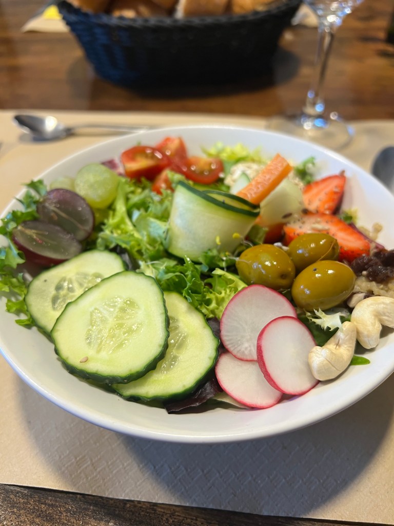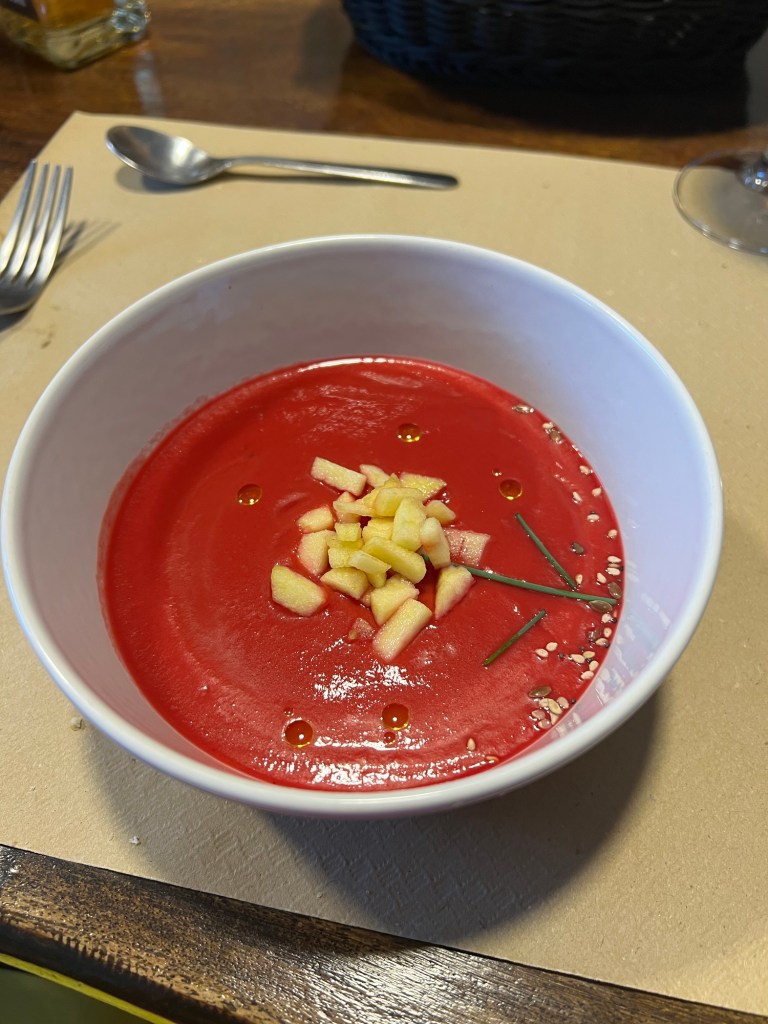 Eventually we made it into zubiri and the grand comfort of Suseia to help us recover This was a lovely place to stay with healthy food, clothes washed and dried. A doona and towel each. I’m going to share the menu with you as it was a magnificent meal “typical” for the area Navarra and it was served with care and kindness. Hasta luego