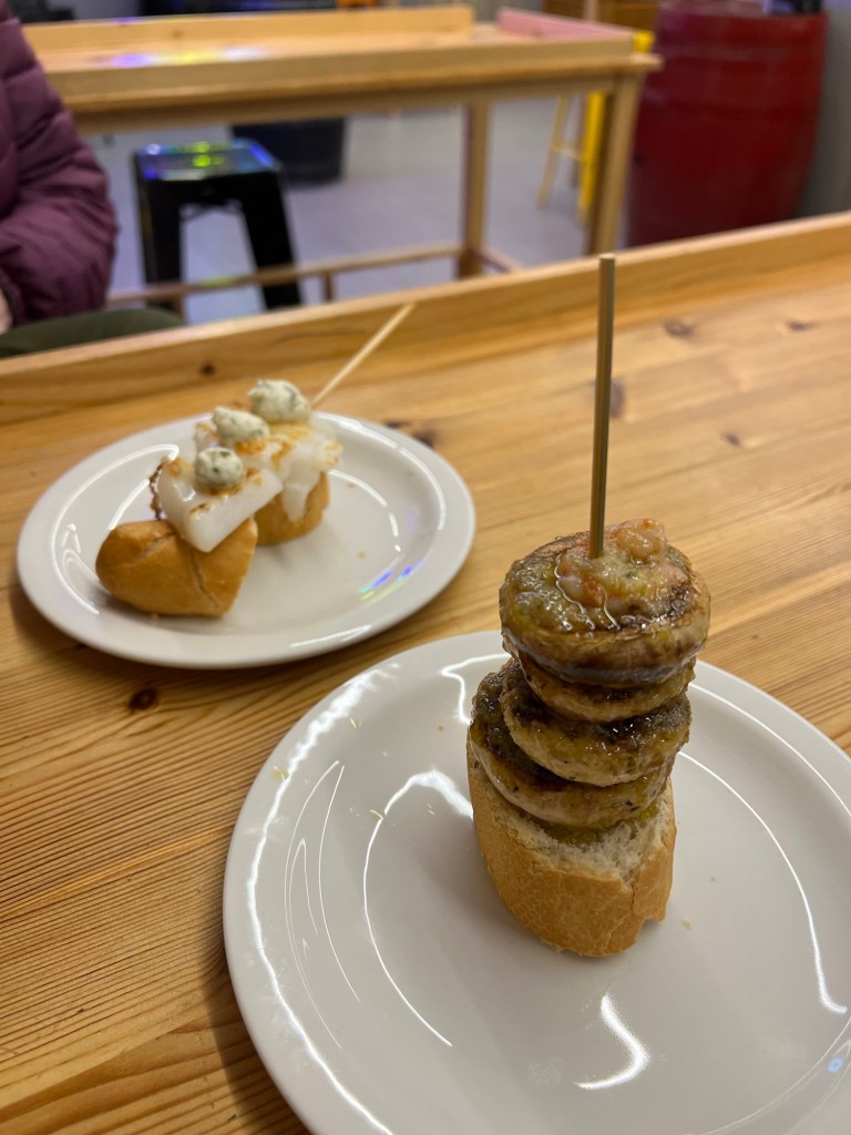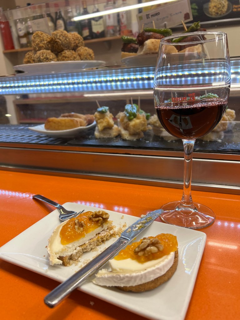 The rain began in the evening and I was glad to have not sent my teva sandals on to santiago as they were needed to avoid slipping on the city streets. Janine caught up and a couple of Melbourne Aussies joined us in one of the Laurel st Tapas bars. Rather than write about it all this time I took a few snaps. Could’ve taken more but too busy eating! Buenas noches
