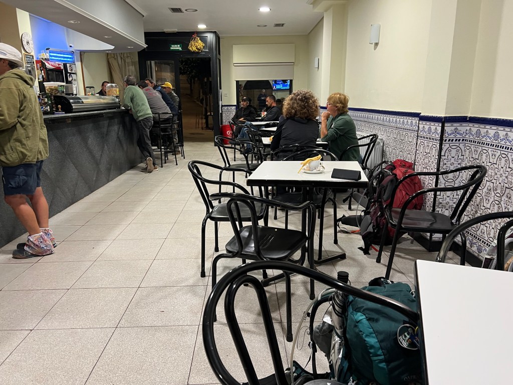This morning started with the German Slow walker and me rushing to be the first people out of the albergue so we could get some breakfast from the bar up the street. The French sisters were already there chomping on surprisingly fresh croissants.
