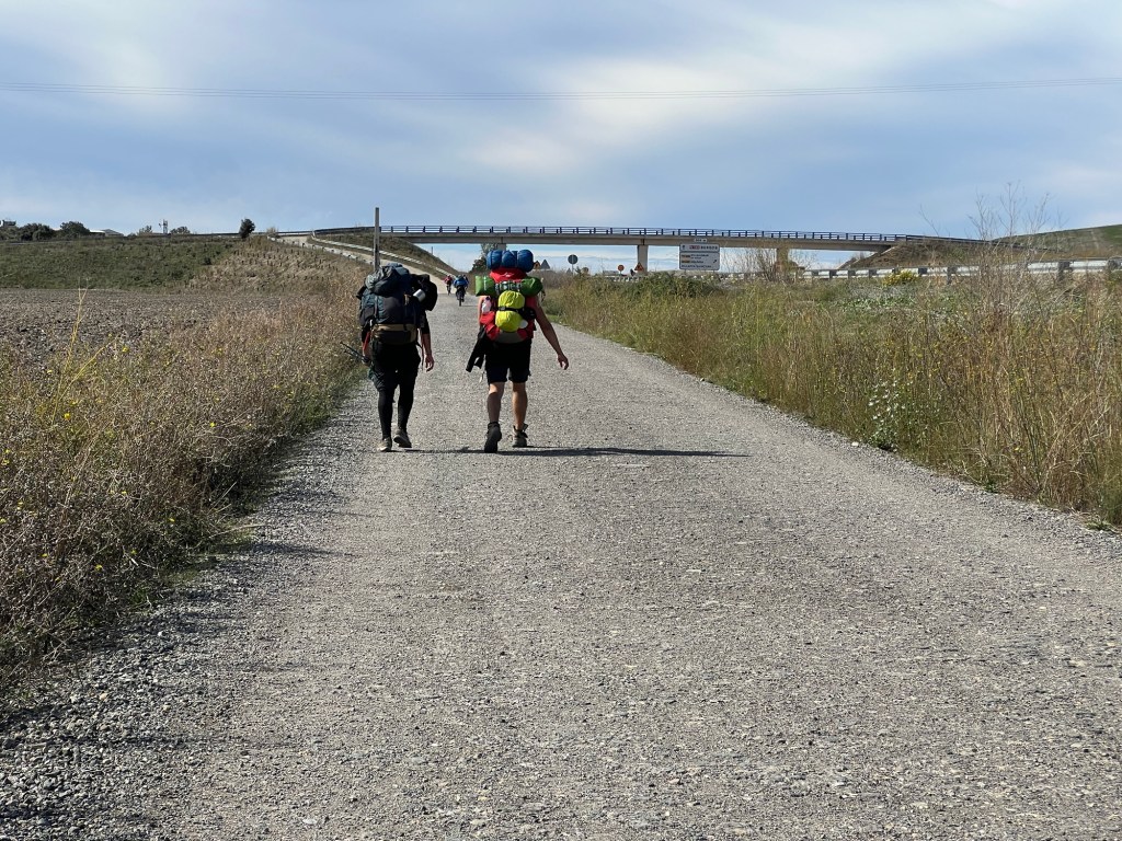 It was a long walk from Chicken town to Grañon and when I could finally see the destination in site I heard a marching team stomping up behind me and I turned to see two men with humongous packs stomping up behind me. One had his hair tied up like Thor and no shirt on as his arms swung in unison to each side. I looked at them as they marched by and informed them “too much energy!” They laughed and marched on.