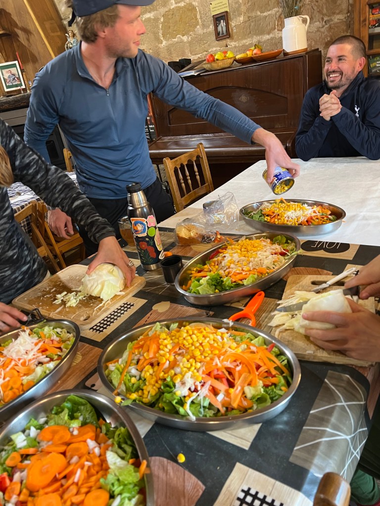 Well this all sounded quite lovely and quite a unique experience but …. The Italians were cooking. But while they were cooking they were drinking red wine and singing and all the vegetables for the salad had been prepared by everyone else. But they kept singing. And they kept drinking wine. And they were loud. And no one else could hear each other. Of course we were laughing and happy. But we were hungry. Eventually the Swedish hippies started banging there cutlery yelling “we want food” The Mexican yoga instructor suggested the ring leader was an Italian movie star. The French mountain girl and the retired Madrilian all joined in with them. There were no nuns to bring the Italians into line!