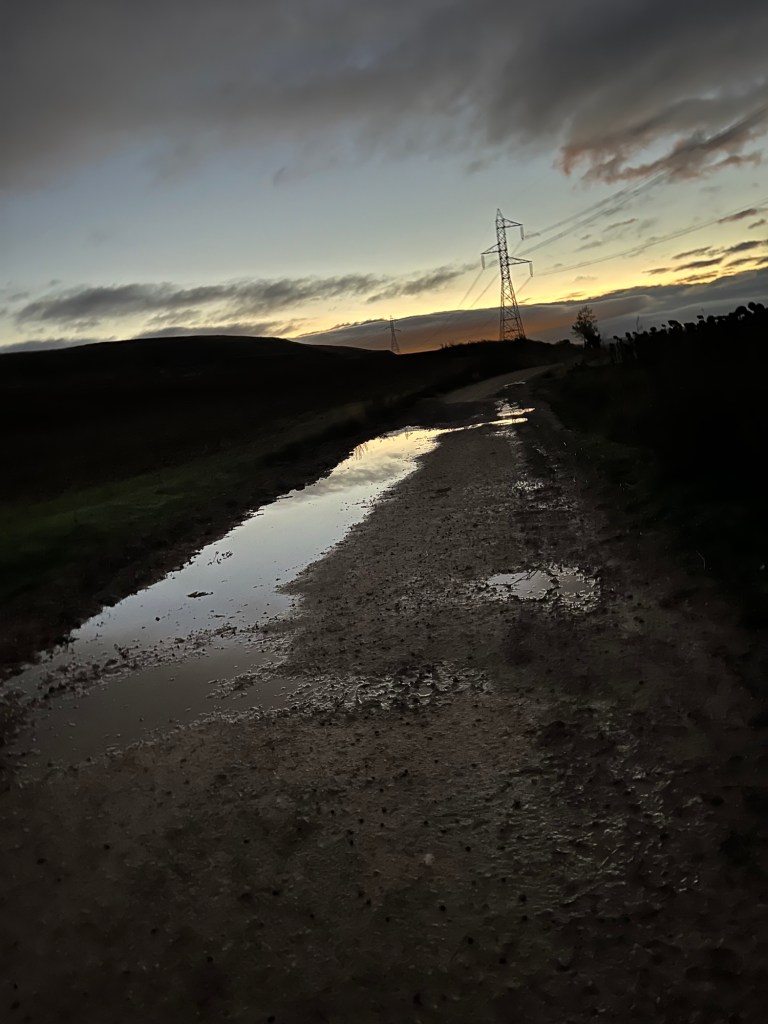 I headed up the hill and had to be very careful on the dirt tracks. The water was still hanging around from yesterday and I didnt want to slip like the Lady from Atlanta did outside of Azofra. It was still dark but slowly the light started spreading across the landscape.