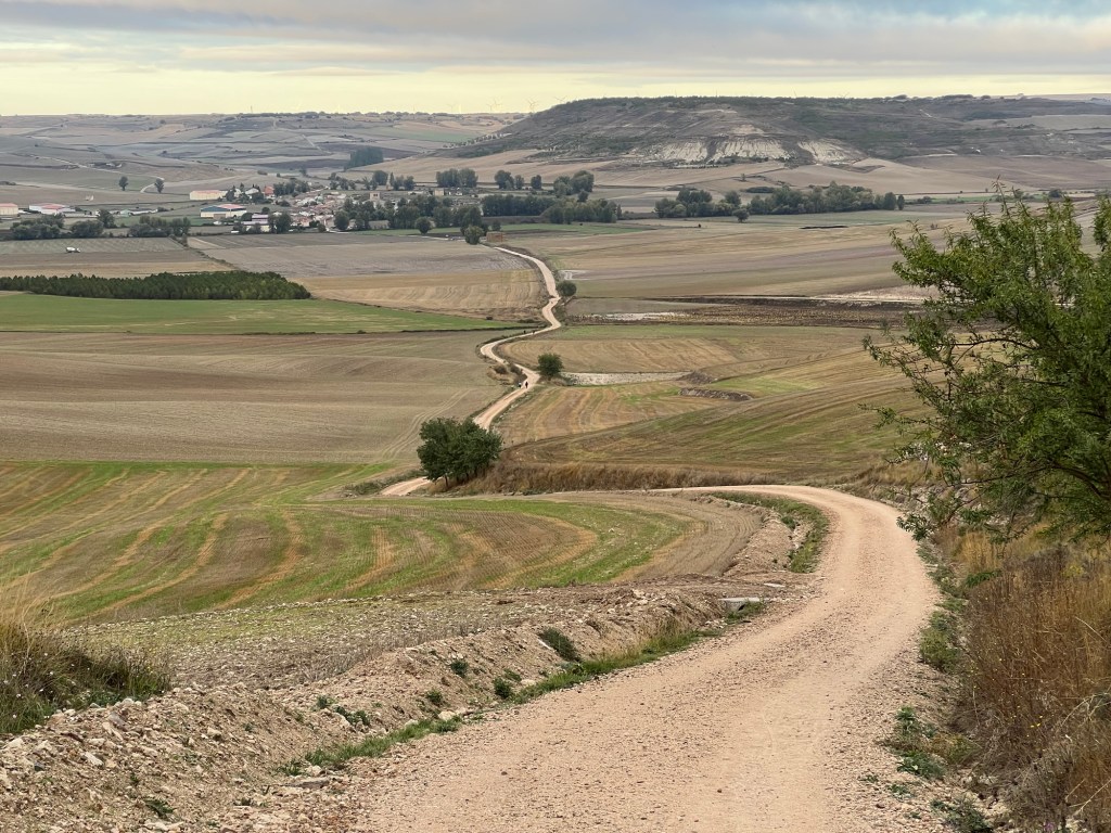 I walked on to Hornillos and hoped to have breakfast there. It really is quite a grand landscape heading down the hill and I was now quite hungry in the rush to get to my tree.