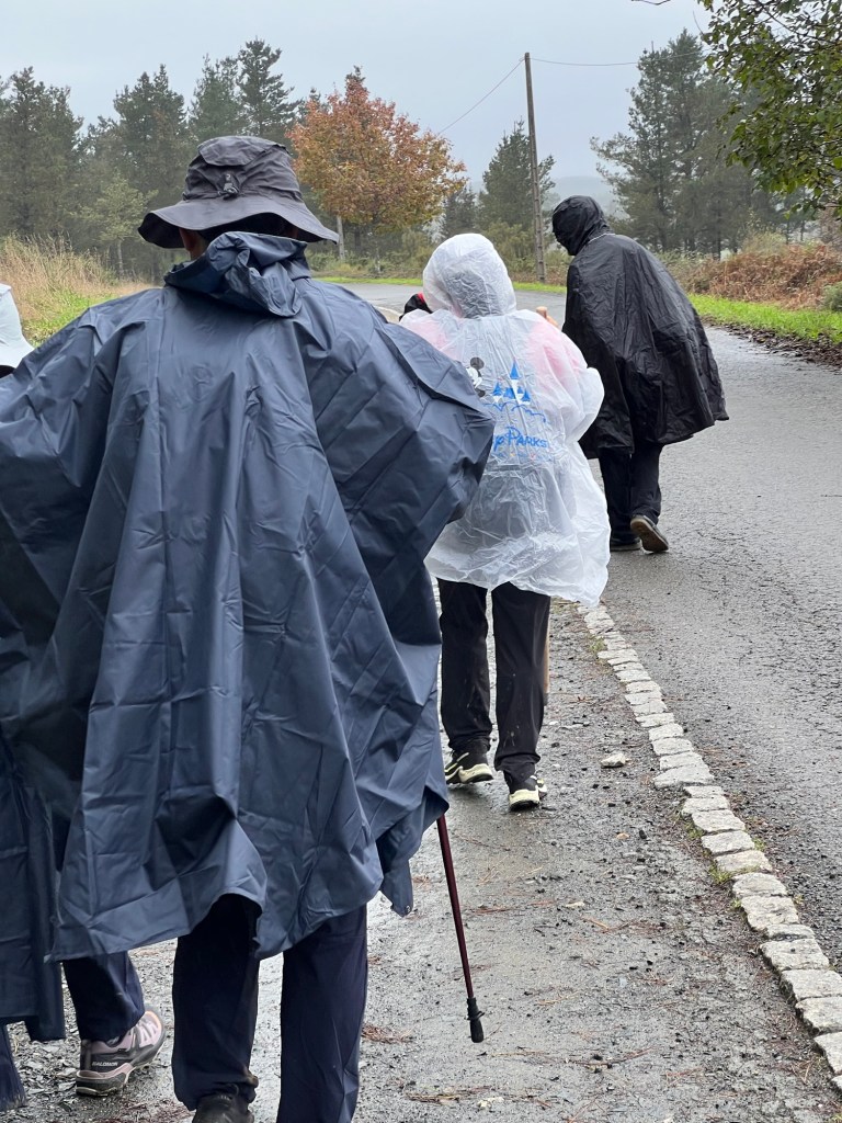 The students started passing us in groups along with many of the Sarria starters we had met or seen yesterday. I also spotted a lady with an actual Disney rain poncho!