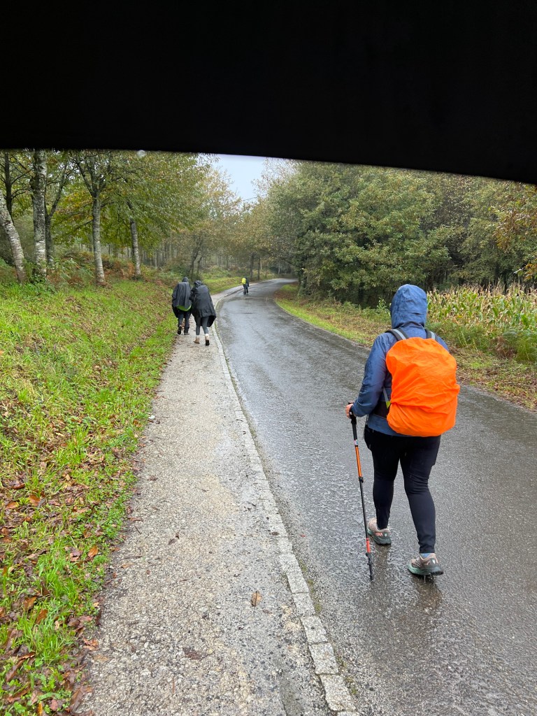 It was a long day and because it kept raining it was difficult to just sit on the side of the trail for 5 minutes here and there so the only stops were in bars that were open and filled with other pilgrims. I used my umbrella on and off and was glad I had it again.